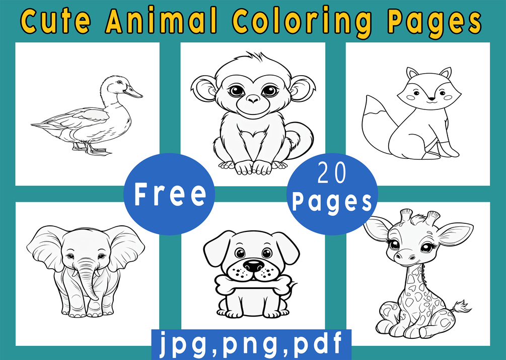 "Download 20 free animal coloring pages packed with fun designs! Ideal for kids who love animals and enjoy coloring."